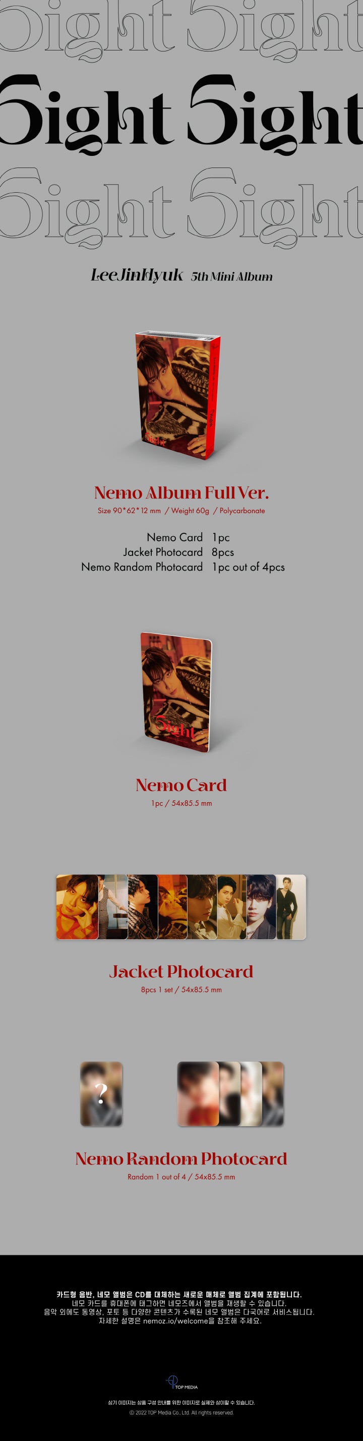 - Jacket Photocard : 54x85.5mm, 1 SET(8ea)